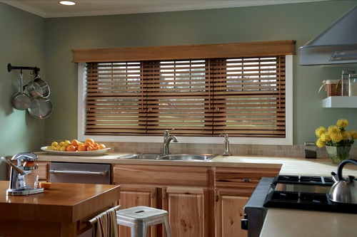 Однако на кухне уместны и деревянные жалюзи, если окно находится вдали от рабочей зоны. Чаще всего, используют деревянные жалюзи в интерьере кухни с классическим стилем или в стиле кантри.