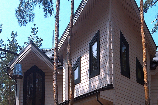 - Коттедж с окнами, выполненными по технологии Glass Wood