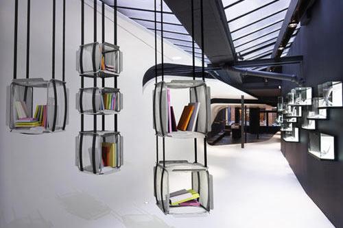 - Интересный дизайн подвесных стеклянных полочек для книг