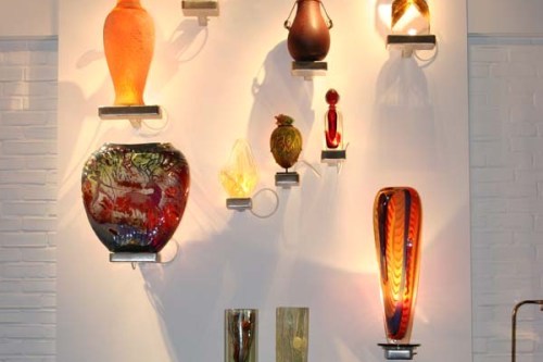- Стеклянные полки с узорами и подсветкой