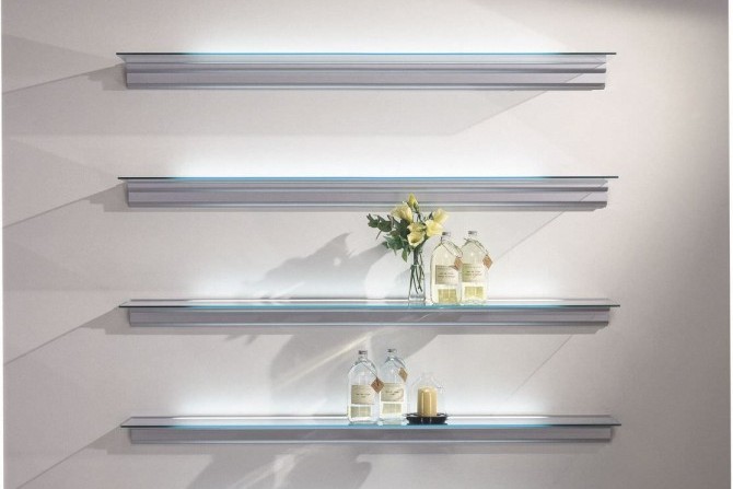 - Настенные полочки из стекла с подсветкой