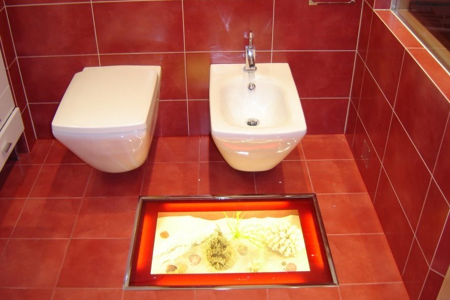 1. Большой пол из стекла (фото прилагается) по всему помещению. Это довольно смелое, и притом дорогое удовольствие. Такой вид пола можно установить практически в любом помещении: на кухне, в спальне, в зале, в прихожей и ванной комнате. А внутреннюю часть пола можно по-разному задекорировать, учитывая дизайн интерьера конкретной комнаты.Кроме того, на стекло можно нанести рисунок, затонировать стекло под зеркало или сделать под иней. А также придать любой цвет, используя специальную пленку, которая находится между листами стекла. Еще один совет дизайнеров: мозаика стеклянная на пол. Она не только подчеркнет великолепие вашего пола, но будет создавать впечатление, будто вы находись в настоящем дворце.