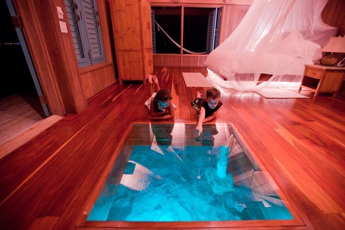 7. Живой аквариум в полу. Это же, наоборот, наиболее дорогой тип стеклянного пола из-за эксклюзивного дизайна. Ведь в этом аквариуме плавают живые рыбки. Такие стеклянные полы в Москве, и не только, можно приобрести по различной цене.Подробнее о том, какова цена пола из стекла можно прочитать в статье на нашем сайте «Сколько стоит стеклянный пол?»
