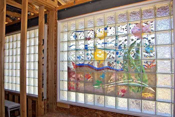 5. С узором. Это стеклоблоки с самыми разнообразной отделкой. Их еще называют стеклоблоки − «витражи». Но т. к. они очень дорогие из-за способа изготовления, то и производят их редко.