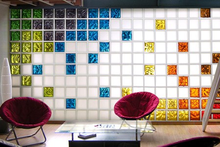 2. Строительные стеклянные блоки. Их еще по-другому называют интерьерные и декоративные стеклоблоки.