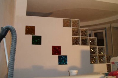 Кроме того, иногда можно встретить стеклоблоки в гипсокартоне. То есть в этом случае несколько стекленных блоков устанавливают в гипсокартонную стену или перегородку. Если вам интересно, каковы преимущества использования разных видов стеклоблоков, об этом можно прочитать в статье на нашем сайте «Стеклоблоки в квартире – размеры и цены».