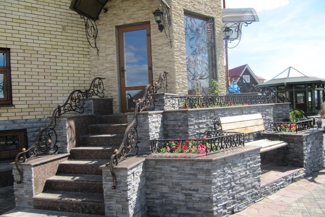 - Дачная входная группа с каменной террасой